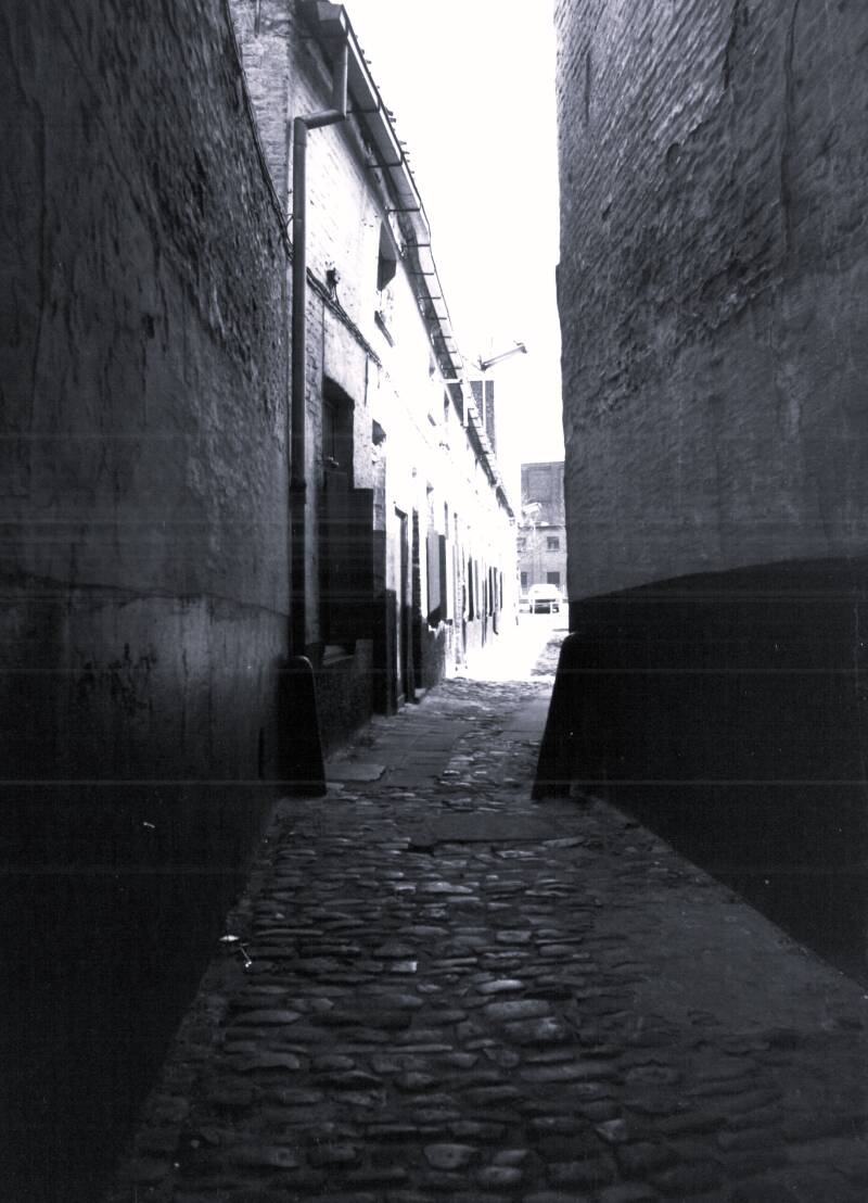Belangrijk tweezijdig bebouwd steegbeluik achter smalle overbouwde doorgang in de Sint-Lievenspoortstraat. Tweede brede open toegang aan de Keizervest.