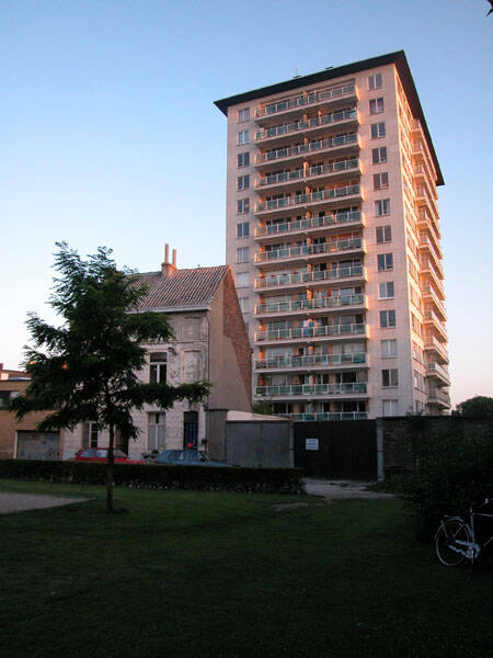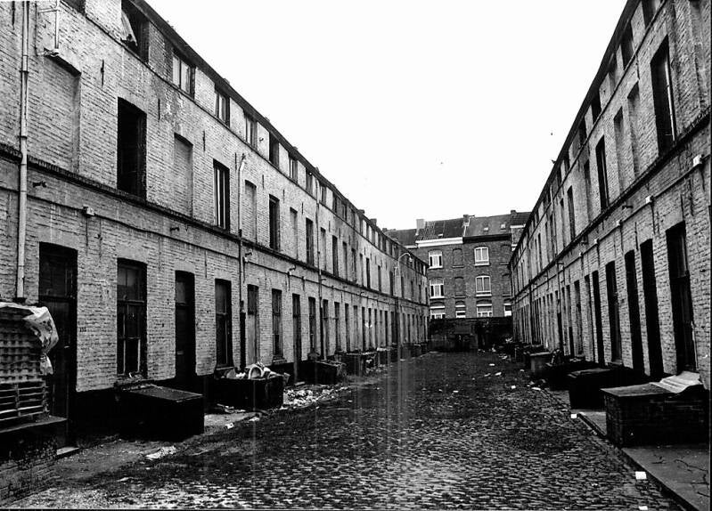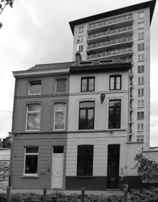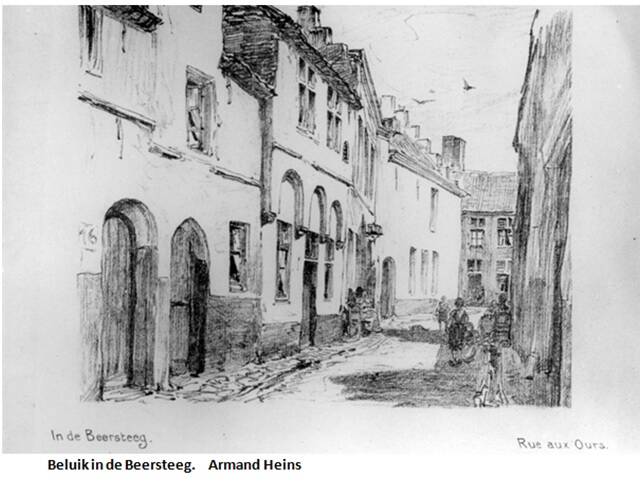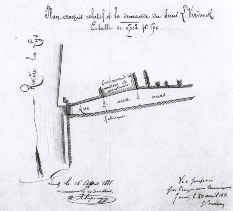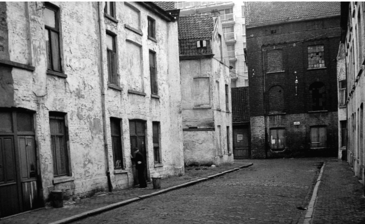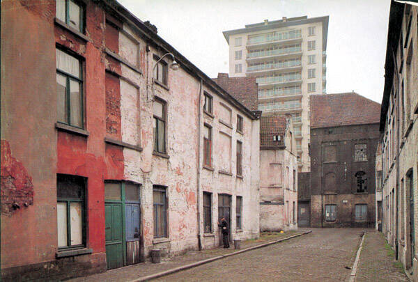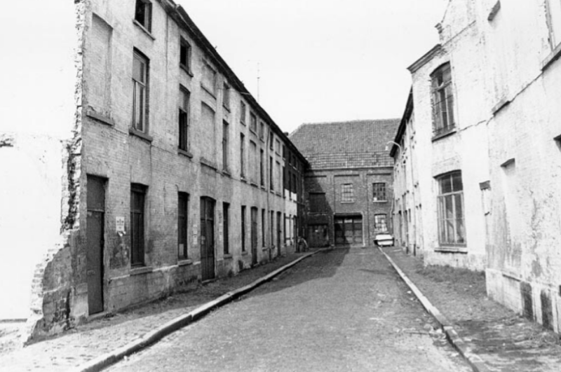 De deur gaf onmiddellijk toegang tot de woonruimte met trap achter beschot. Er was één w.c. per huis). Het beluikje zag uit op de Leie.