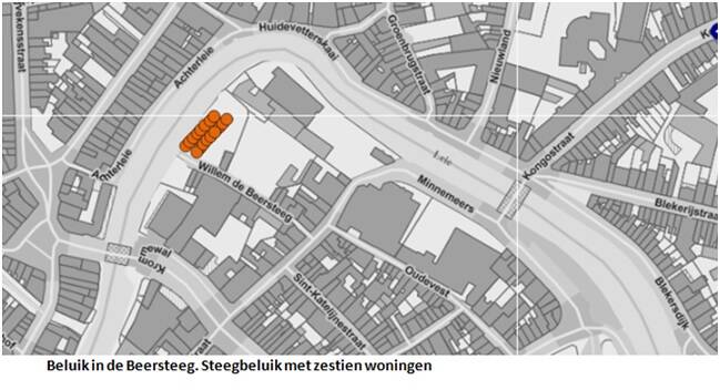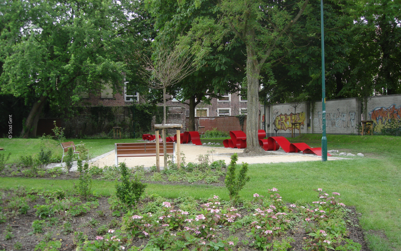 Het parkje in de Willem de Beersteeg, dat nu wordt aangelegd is opgevat als een ‘secret garden’, een verborgen plekje dat zich langzaam laat ontdekken. Het is enkel te bereiken vanuit de Willem de Beersteeg. Het centrale pleintje is aangelegd in dolomiet. Dat maakt dat het ook als petanqueveld dienst doet. Het kreeg een dubbele rij kasseien als afboording. Die verwijzen naar het stukje Willem de Beersteeg dat verdween en in het park werd opgenomen. Een opvallende knalrode golvende bank boordt het plein af. Hij is zowel een zitelement als een spelprikkel. De rode kleur geeft het parkje een warme sfeer.