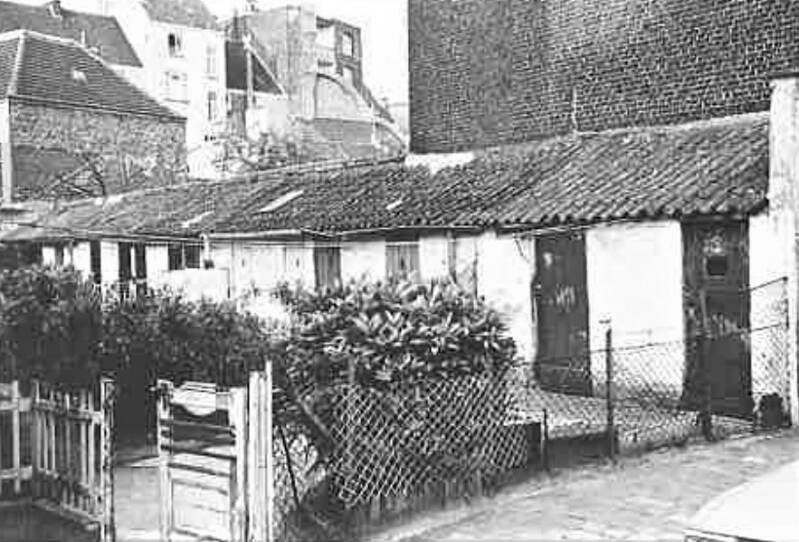 Driezijdig bebouwd pleinbeluik volgens kadastergegevens daterend van 1889. Brede open zijde aan de straatkant afgesloten door een gemetst bakstenen muurtje met ijzeren hek erop. Twee toegangen in deze afsluiting, namelijk aan weerszijden van een aan de straat palend gebouwtje voor sanitair met één bouwlaag onder schilddak en met blinde straatgevel. Negen arbeidershuisjes van anderhalve bouwlaag onder zadeldak Gesloopt