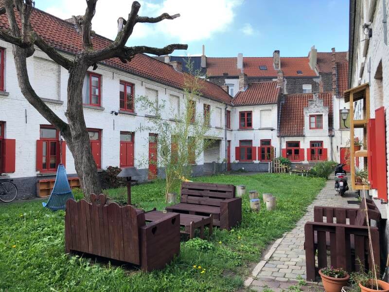 Achter smalle, deels overbouwde toegang ligt het oudste gedateerd beluik van dit inventarisgebied, bestaande uit twee componenten: enerzijds een klein pleinbeluikje van twee woningen (nummers 125 en 127), op een gevelsteen boven de deur gedateerd "1779", achter dit koertje, en bereikbaar via een smalle open doorgang, luchtig steegbeluik uit eerste kwart negentiende eeuw. Nummers 125-127 worden gevormd door twee kleine huizen van twee bouwlagen, twee traveeën met spiegelbeeldschema, onder zadeldak (Vlaamse pannen). Rechthoekige openingen onder houten latei en met natuurstenen dorpels. Witgekalkte gevel op gepikte plint, met behouden verankering. Vermoedelijk ontstaan door opsplitsing van één enkel in binnenblok gelegen woonhuis. Achterliggend steegbeluik (nummer 129-137) oorspronkelijk aan weerszijden bebouwd; de woningen aan rechterzijde zijn tijdens het derde kwart van de twintigste eeuw tot werkhuizen omgevormd. De resterende beluikhuizen (links) bezitten anderhalve bouwlaag, twee traveeën met spiegelbeeldschema onder lessenaarsdak (Vlaamse pannen). Openingen onder strekse boog en met natuurstenen dorpels; meeste vensters voorzien van houten rolluikkasten. Opmerkelijk is dat zich boven de deur noch een venster, noch een uitgespaard venstervlak bevindt. Gecementeerde gevel met schijnvoegen, witgekalkt en op gepikte plint. Achteraan het beluik: houten neogotische muurkapel met Mariabeeld.