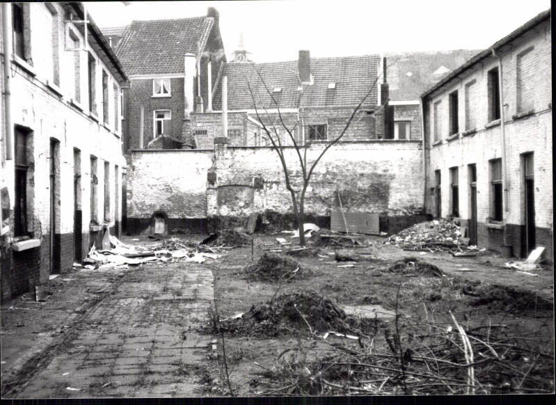 Pleinbeluik waarvan de oorspronkelijke overbouwde toegang circa 1912 opengebroken werd tot de huidige open toegang, afgesloten door hardstenen paaltje. Gekasseide binnenkoer, met gemeenschappelijke toiletten in zuidelijke en oostelijke hoek, op de plaats van twee eveneens circa 1912 gesloopte woningen. De huizen nummers 5 tot 27 werden in 1836 opgericht, de huizen nummers 19-23 dateren van 1847: nummers 25-27 gaan terug op een oudere kern, welke eveneens in 1847 opgesplitst en verbouwd werd. Huizen van twee bouwlagen, twee traveeën met spiegelbeeldschema, onder mansardedak (Vlaamse pannen). Openingen onder strekse boog, met hardstenen dorpel op de gelijkvloerse verdieping en tegels als dorpels op eerste bovenverdieping; de woningen nummer 25-27 bezitten echter vensters onder houten latei en deuren met bovenlicht.
