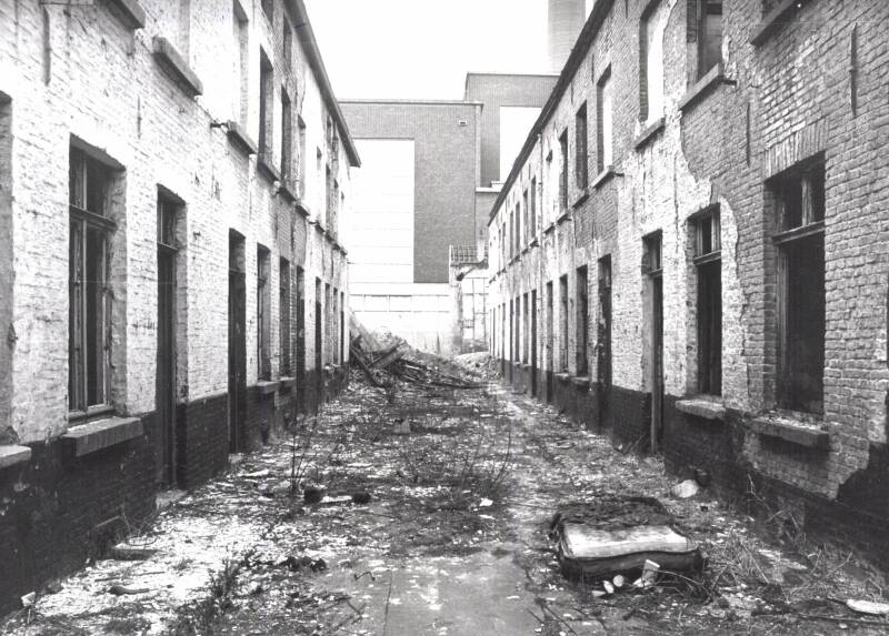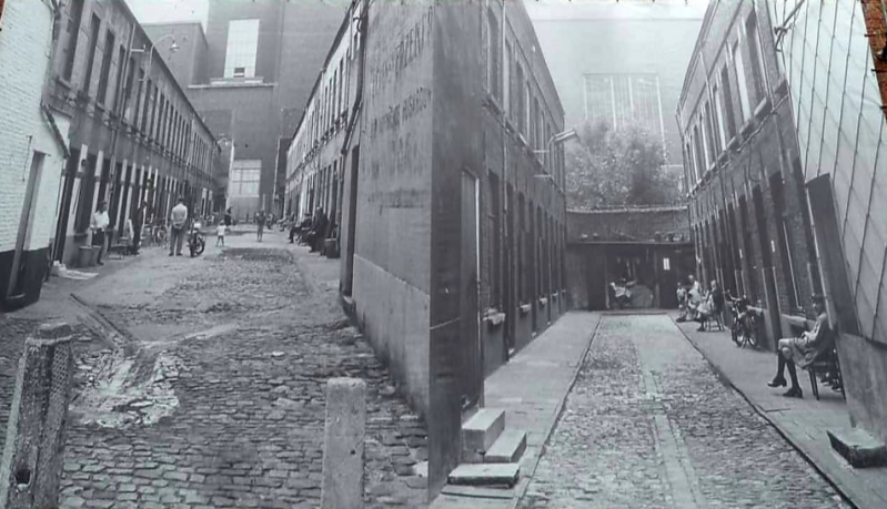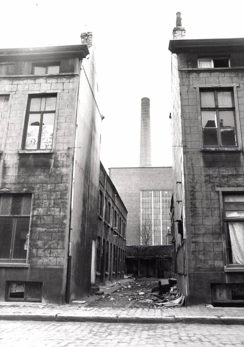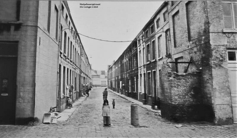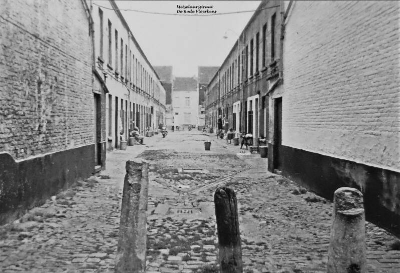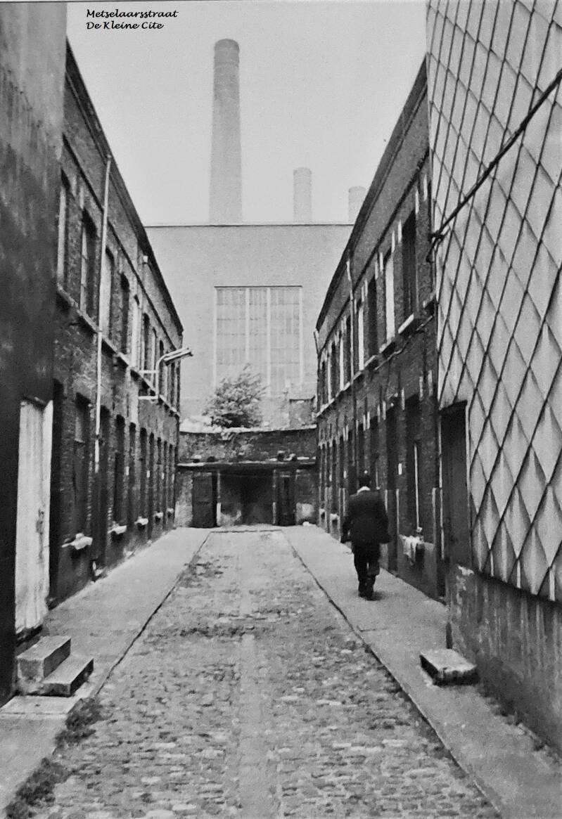Steegbeluik van Metselaarsstraat tot Regattenlaan, met toegang in beide straten. Gebouw in 1864, samen met de huizen aan de Zonder-Naamstraat; bij ons plaatsbezoek reeds volledig gesloopt.