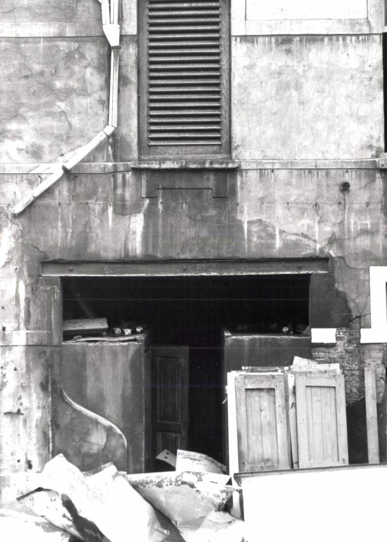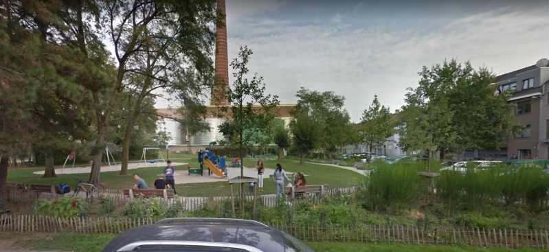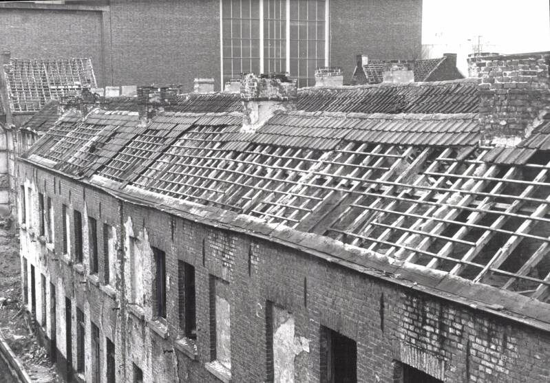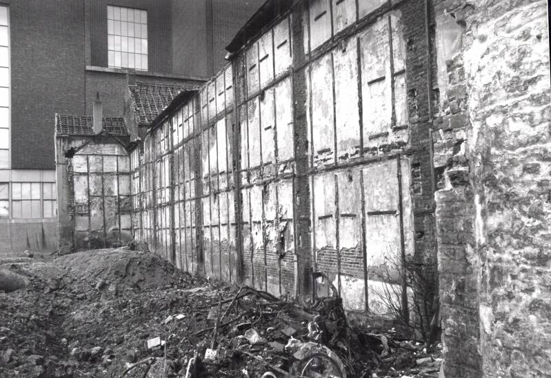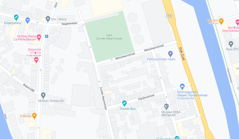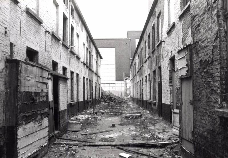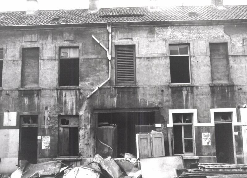 Steegbeluik van Metselaarsstraat tot Regattenlaan, met toegang in beide straten. Gebouw in 1864, samen met de huizen aan de Zonder-Naamstraat; bij ons plaatsbezoek reeds volledig gesloopt.