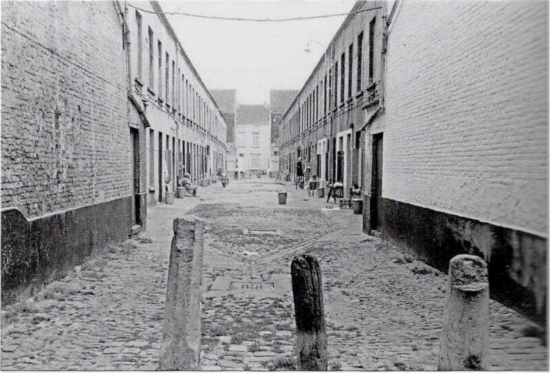 Van het in 1884 in opdracht van F.M. De Coster, handelaar, opgetrokken steegbeluik restte begin 1978 enkel de westzijde. Het betrof een eentonige rij woningen van twee en een halve bouwlaag, twee traveeën (repeterend schema), met verankerde gewitte gevels op gepikte plint. In de tweede bouwlaag, boven de deurtravee, slechts een doorlopend muurvlak in plaats van een blind venster, waardoor de gevelritmiek verbroken wordt.