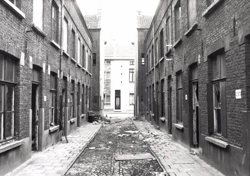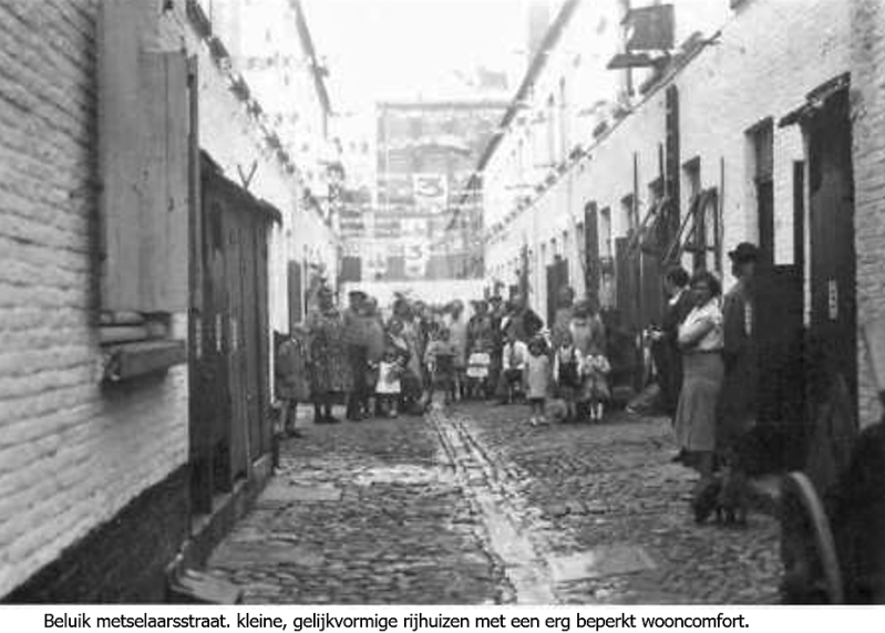 Proletarische woonhuisbouw te herleiden tot twee categorieën: de kleinere doorsneehuizen met bepleisterde evels zorgen voor kleinschalige, licht gevarieerde gevelwanden, en de beluiken.
