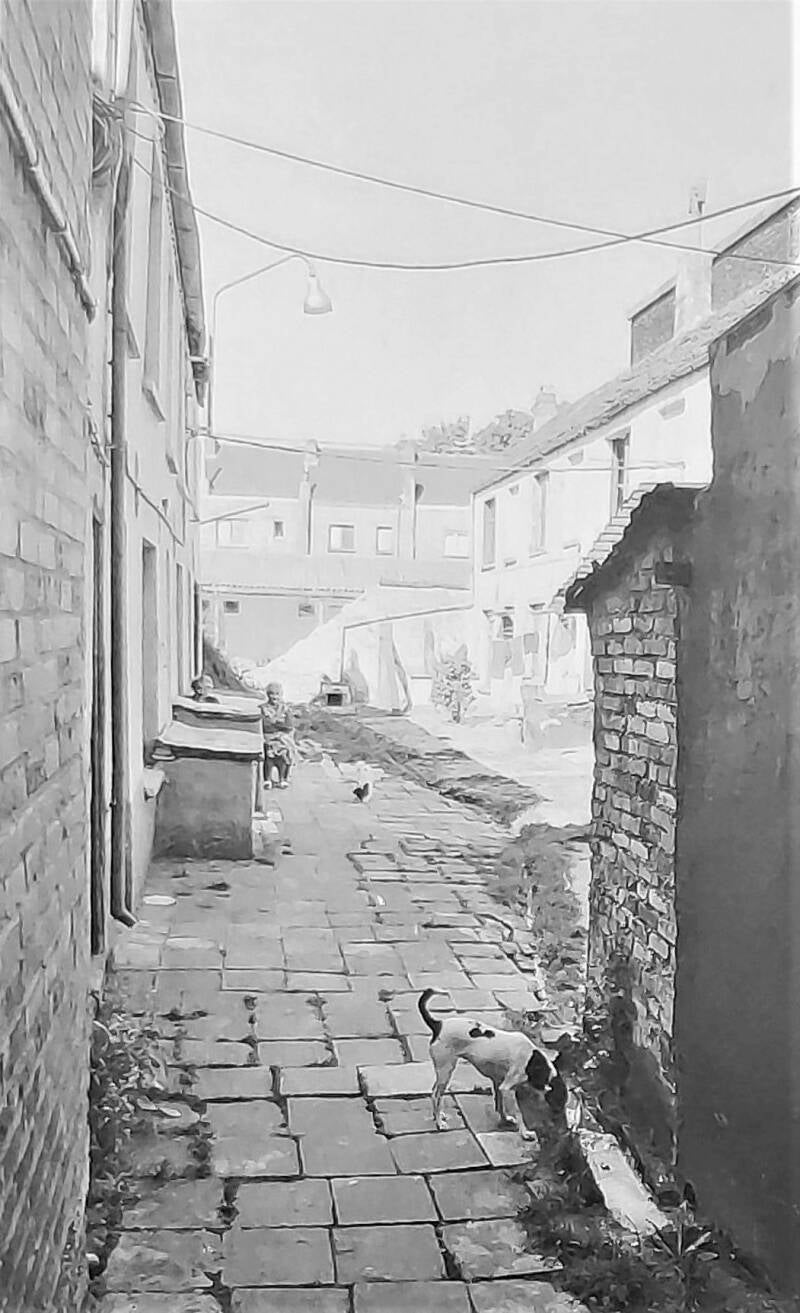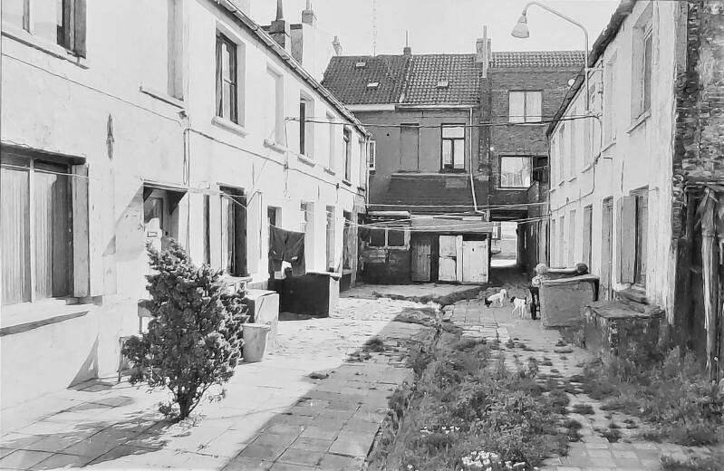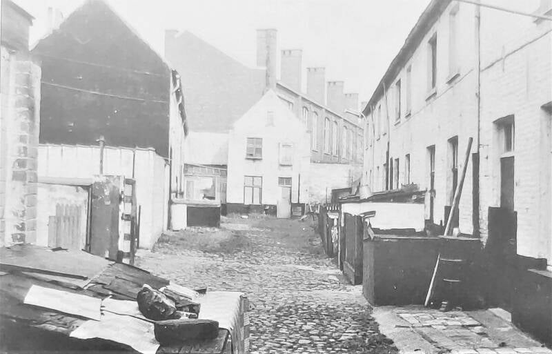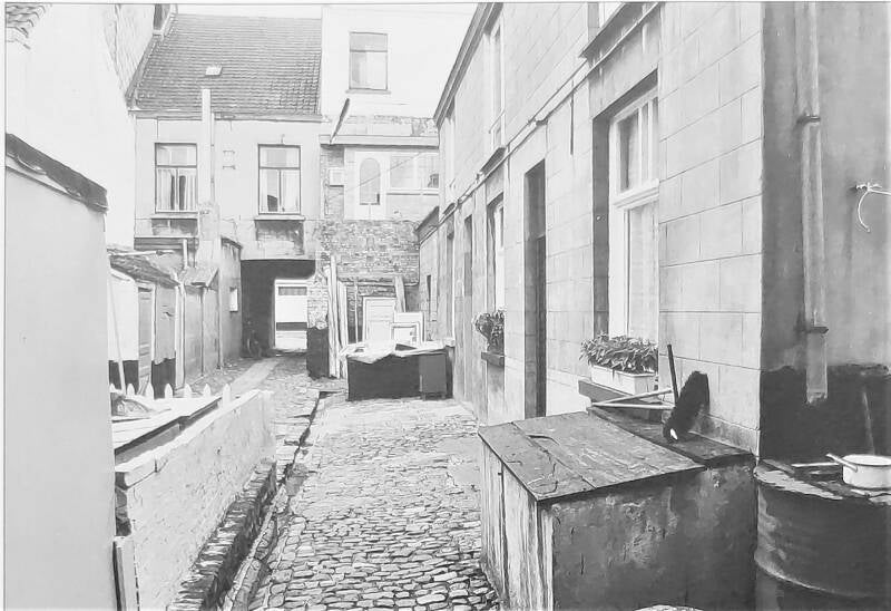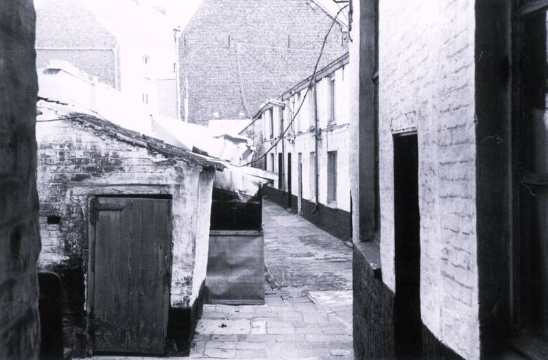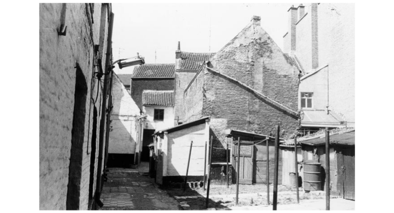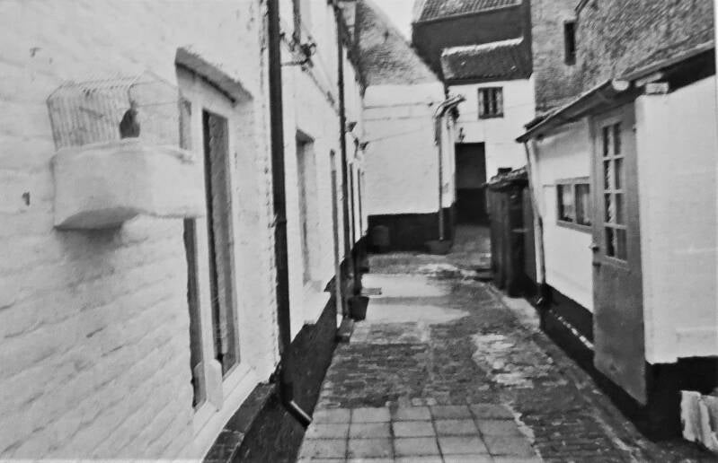 Nummers 47-65. Tweezijdig bebouwd, breed steegbeluik met overbouwde doorgang, van 1843. Laatste twee woningen aan linkerzijde recent gesloopt. Woningen van twee bouwlagen, twee traveeën met repeterend schema, onder zadeldak (Vlaamse pannen). Rechthoekige openingen met hardstenen onderdorpels. Verankerde witgeverfde gecementeerde gevels met schijnvoegen, en kolenbakken onder de vensters.