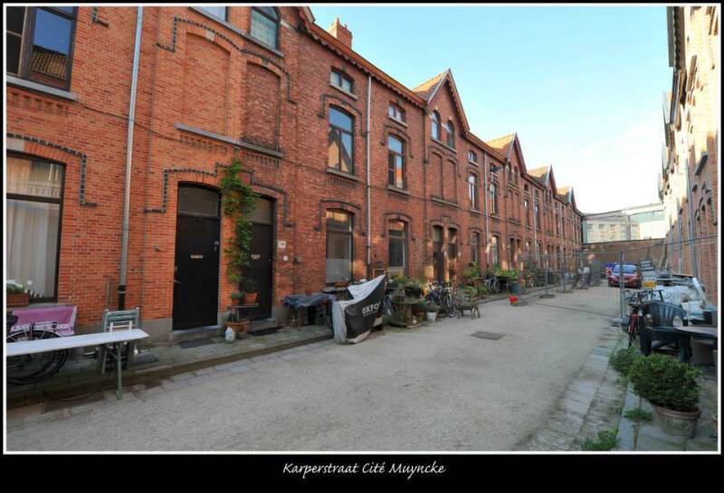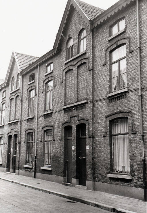 Nr. 30-74 vormen een tweezijdig bebouwd steegbeluik z.g. "cité Muyncke", met toegang op straatbreedte afgezet door vier grenspaaltjes. Bakstenen enkelhuizen van twee trav. en twee en een halve bouwl. vlg. spiegelbeeldschema, onder zadeldaken (mechanische pannen), vlg. archiefstukken daterend van 1888.