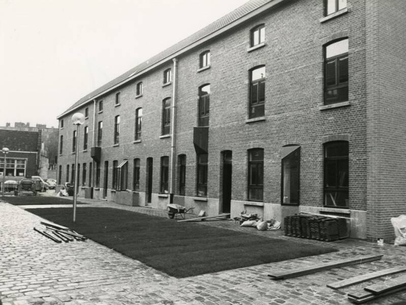 Bakstenen gevelwanden op arduinen plint horizontaal gemarkeerd door witgeschilderde kordons ter hoogte der tussendorpels. Huisjes van drie bouwlagen. en één traveeën. met getoogde muuropeningen. Aaneenschakeling vlg. repeterend schema. Grotere hoekhuizen voorzien van afgekante hoek traveeën.