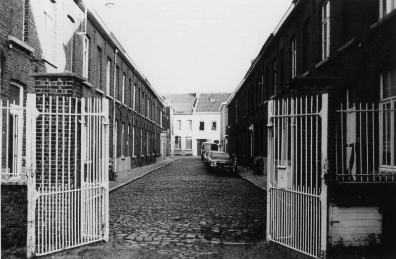 In het vierde kwart van de 19de eeuw werden bijna naast elkaar twee beluiken gebouwd aan de Drongensesteenweg, heden zogenaamd Koker- en Schrijnwerkersstraat. Laatstgenoemde vermoedelijk van de jaren 1880 en 1890. Tweezijdig bebouwd steegbeluik met toegang op straatbreedte. Enkelhuizen van twee bouwlagen en twee traveeën volgens repeterend schema. Lijstgevels met doorlopende kroonlijst. Bakstenen gevels met getoogde deuren en vensters en sierankers op de borstweringen. Individuele koertjes achteraan.