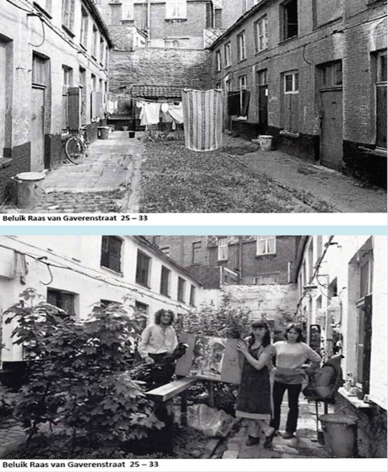 Voorheen nummers 25-33. Zogenaamd Strontpoortje. Pleinbeluik toegankelijk via smalle overbouwde doorgang, gegroeid rondom een oudere kern. Nummer 29 opklimmend tot eind 18de eeuw. Buitenwoning: één bouwlaag, thans lichtjes verhoogd, onder lessenaarsdak (aanleunend tegen blinde muur) (Vlaamse pannen). Rechthoekige en getoogde vensters in bepleisterde gevel op gecementeerde of gepikte plint. Nummer 25, 27, 31 en 33 dateren van 1845-46 en zijn deels verbouwingen van een bij een lusttuin behorend dienstgebouw (nummer 25-27 en deurtravee van 33) deels nieuwbouw. Eerst genoemde woningen met twee bouwlagen, drie traveeën met spiegelbeeldschema onder zadeldak (Vlaamse pannen), laatst genoemde met anderhalve bouwlaag, twee traveeën en lessenaarsdak (Vlaamse pannen). Verankerde witgekalkte gevels op gecementeerde plint met schijnvoegen. Getoogde vensters op tegeldrempels.