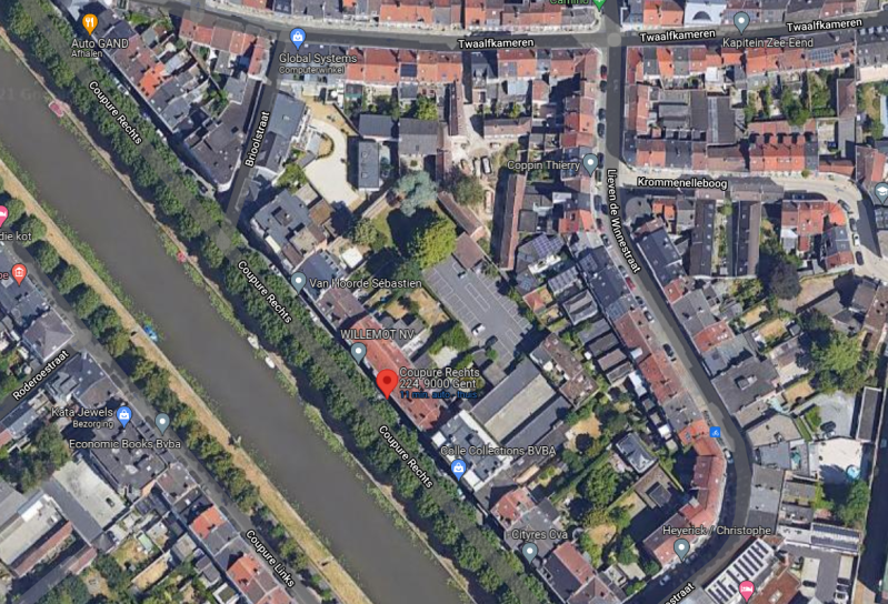 Voor het enige beluik ooit rechtsstreeks aan de Coupure zelf gebouwd, een destijds populaire cite Anglaise of cite jardin (een woonkern in het groen), was de bouwonderneming van de gebroeders De Waele verantwoordelijk. In 1836 realiseerden zij vier woningen van het bediendehuistype aan de straatzijde., met een centrale doorgang naar vijf huizen aan een parallelle steeg achterin. Deze laatste zijn vandaag verdwenen, maar de voorhuizen bestaan nog, als burelen voor de verzekeringsmaatschappij Willemot.