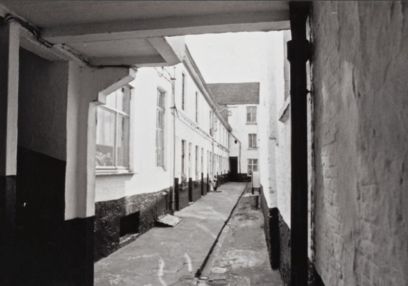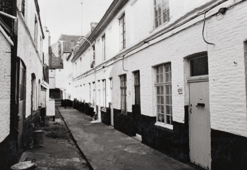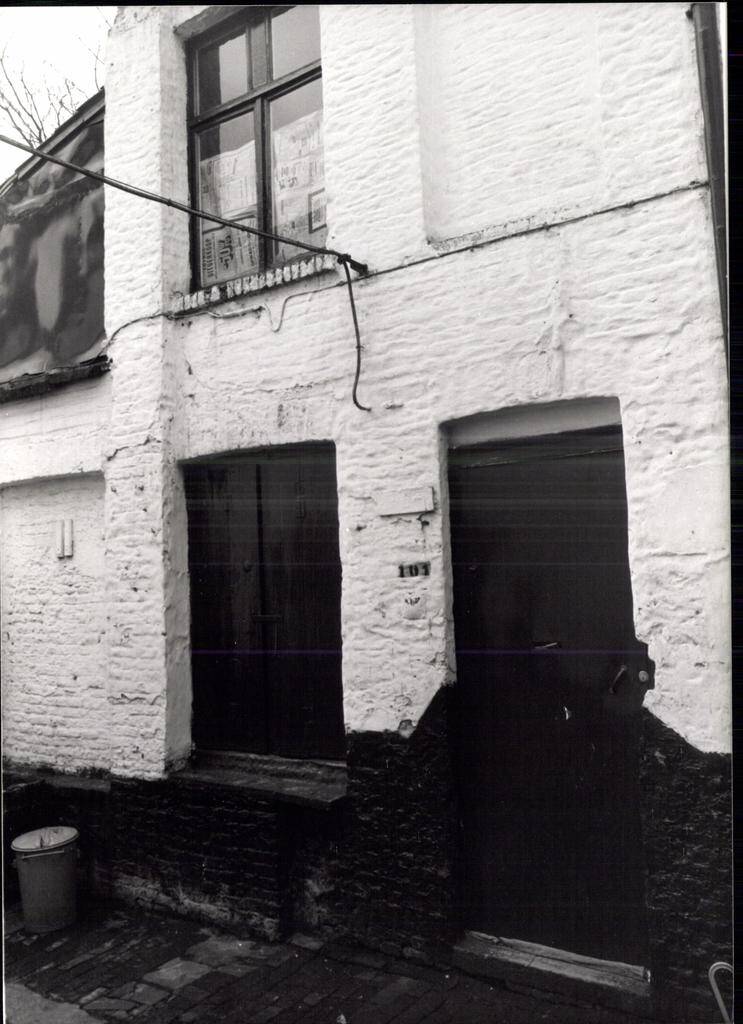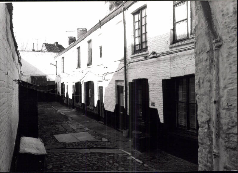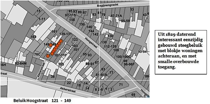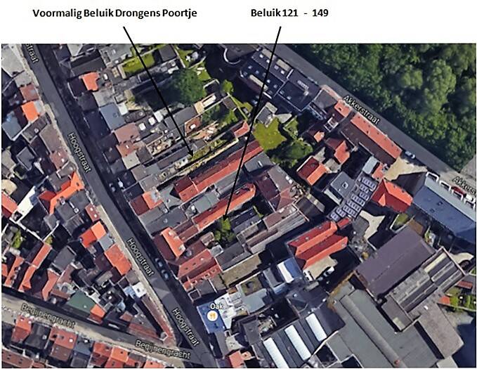 Beluik zogenaamd "'t Drongenpoortje". Steegbeluik met een woning links (nummer 105) en een rij van acht huizen rechts, achter smalle overbouwde toegang en smalle doorgang, vernauwd door het vooruitspringen der huizen rechts nummers 119-121. Nummers 107-117 gebouwd in 1829, nummers 119-121 verbouwing van een oudere constructie, zie muurvlechtingen en bouwnaden in zuidwestelijke gevel, eveneens van 1829, doch circa 1870 opgedeeld in de huidige twee panden. Nummer 105 is een laatste overblijfsel van een langgerekt dienstgebouw (1850), dat eveneens circa 1870 in een rij woningen werd opgesplitst zie de resten van een liseen en tot nissen getransformeerde vensters in de muur links van nummer 105.
