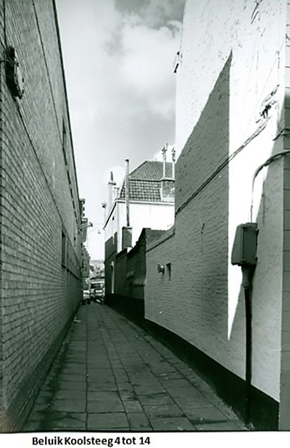 Aanvankelijk tweezijdig bebouwd steegbeluik toegankelijk via een overbouwde doorgang onder nr. 2. De linker huizenrij (nr. 6-14) van arbeidershuisjes met twee bouwlagen en twee traveeën met repeterend schema onder zadeldak (pannen) dateert van 1829.