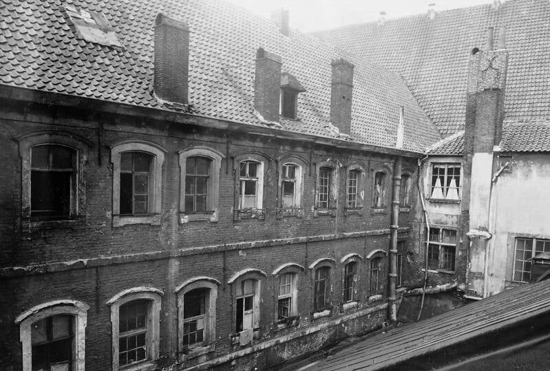 In de beginfase, na de afbraak van de Predikherenkerk (1860) wordt er niet meer geinvesteerd in het Pnd. De erfgenamen investeren niet in renovatie en onderhoud en drijven uit winstbejag de bewoning op. Het Pand wordt een van de zovele arbeidersbeluiken waar elke vrije vierkante meter wordt volgebouwd en volgestouwd met goederen en gezinnen. De gebouwen worden in 1954 onbewoonbaar verklaard en een jaar later werd het hele verdere complex als monument geklasseerd. De uitdrijving van de straatarme bewoners had heel wat voeten in de aarde. De laatsten werden manu militari buitengezet.