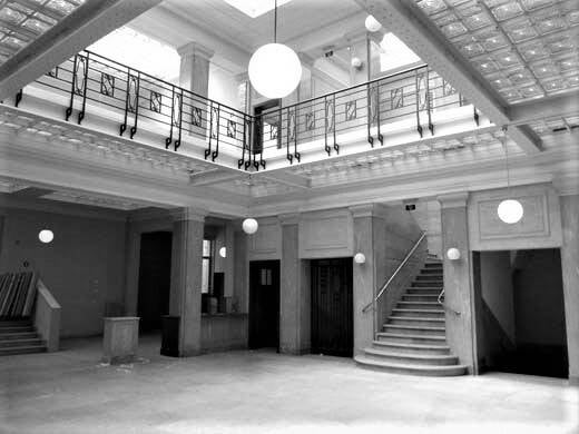 Het interieur getuigt van een totaal ander karakter dan de gevelafwerking. De detaillering van het interieur verwijst naar de functionalistische richting verfraaid met ornamenten neigend naar de art deco en andere eigentijdse stijlelementen. Ook totaalconcept is typerend. Het oorspronkelijke meubilair werd vervaardigd door de Ateliers Fortuna.