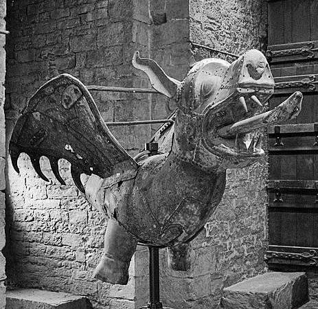 Bij een controle van de ‘Draak’ in 1980 op het Belfort constateert Herman De Ridder, stadsingenieur dat het beest op instorten staat. Het ijzeren frame dat de koperen platen van de ‘Draak’ bijeenhoudt is aan het oproesten. Bijna een volle kruiwagen roest wordt er uitgehaald.