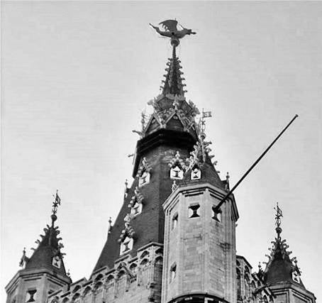 Boven op het Belfort vragen Herman en zijn medewerkers zich af wat er aan de hand is. Vol ongeduld speuren ze in de lucht naar een vliegende ‘Draak’…vergeefs.