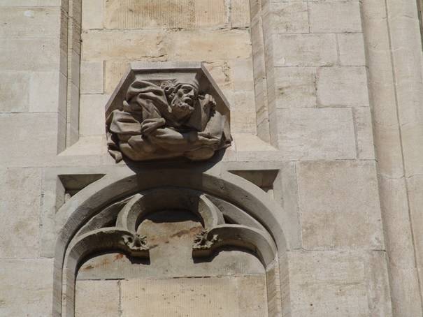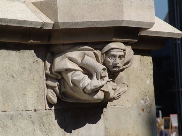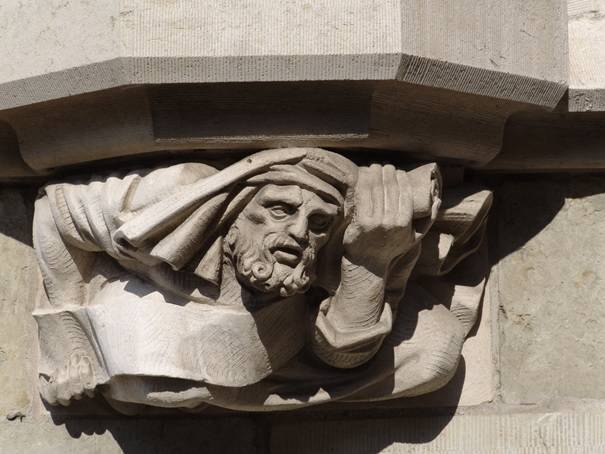 3) De Mammelokker zelf, ten slotte, is helemaal opgetrokken in blauwe hardsteen en is zwaar gerestaureerd - om niet te zeggen verminkt - bij de grote restauratiecampagne begin deze eeuw. Ook hier moet het gebouw vooraf worden gereinigd. Her en der moeten enkele lokale herstellingen aan de blauwe hardsteen (arduin) worden uitgevoerd.