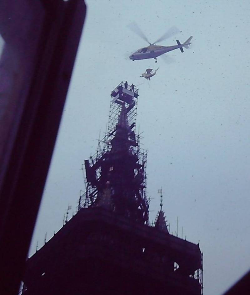 Eerst wordt ze ontmanteld en naar beneden gehaald en nadat ze van nieuwe ‘ingewanden’ is voorzien moet het hele gevaarte terug worden geplaatst… hoog boven op zijn spits. Een niet zo eenvoudig karwei.