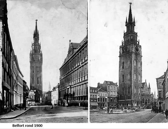 De klokken in de belforttoren waren zeer belangrijk. Zij regelden immers heel het openbaar leven. Mettertijd werd de toren verrijkt met een uurwerk, een beiaard en een speeltrommel. Het huidige klokkenspel telt 52 klokken waarvan 25 nieuwe (1980); de overige werden in 1659-1660 gegoten. De beroemde “klokke Roeland”, ook “Grote Triomfante” genoemd, werd in 1315 vervaardigd maar pas in 1324 in de toren opgehangen. Een nieuwe klok verving het eerste exemplaar in 1660 maar werd beschadigd bij het inluiden van de Gentse Feesten in juni 1914.