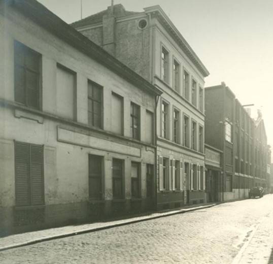 Deze groeide uit twee voordien in deze zone reeds actieve bedrijven, de brouwerij Heughebaert (sedert begin 19de eeuw) en de brouwerij-stokerij J. Spilthoorn (opgericht in 1838). Beide kenden een afzonderlijke langzame groei tot circa 1930-1933 toen ze (definitief?) samengevoegd werden en een expansieve fase begon, welke de vroegere kleinschalige bebouwing (voornamelijk arbeidershuisvesting) verdrong. De meeste thans nog bestaande constructies kwamen trouwens tussen 1933 en 1937 tot stand.