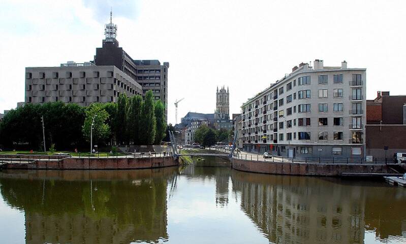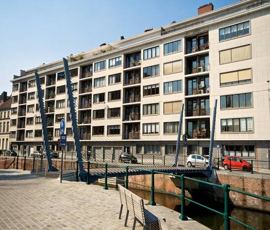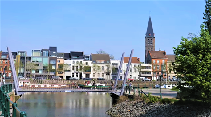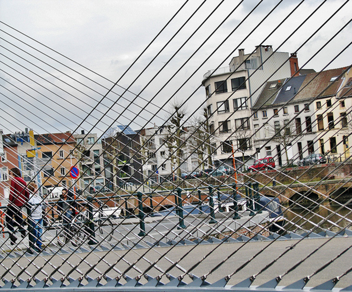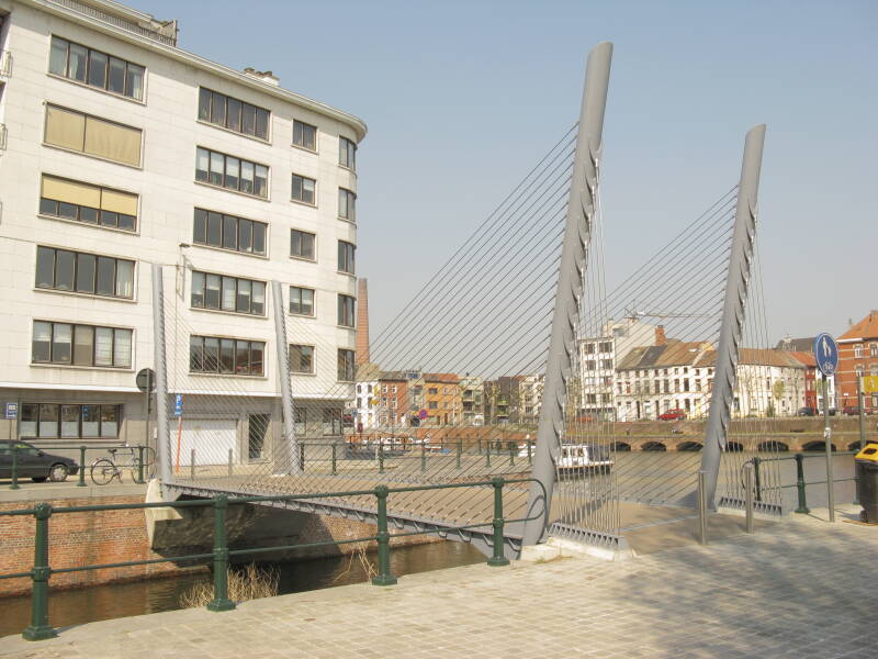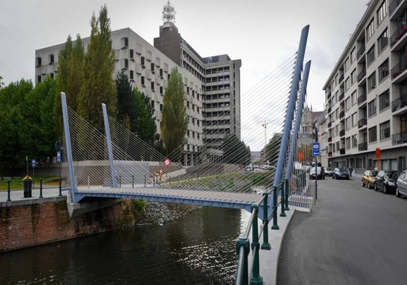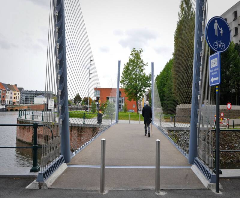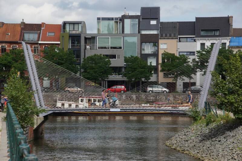 Deze brug maakt het mogelijk om via de vele fietsroutes en jaagpaden langsheen de Leie en Nederschelde het Gentse stadscentrum in te komen.