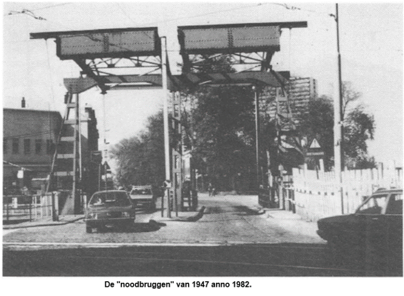 Men plaatste twee noodbruggen op binnenschepen, welke bij doorvaart van andere schepen telkenmale moesten verplaatst worden. Dit was niet alleen een moeilijke opdracht doch zorgde tevens voor langdurig oponthoud van het wegverkeer.