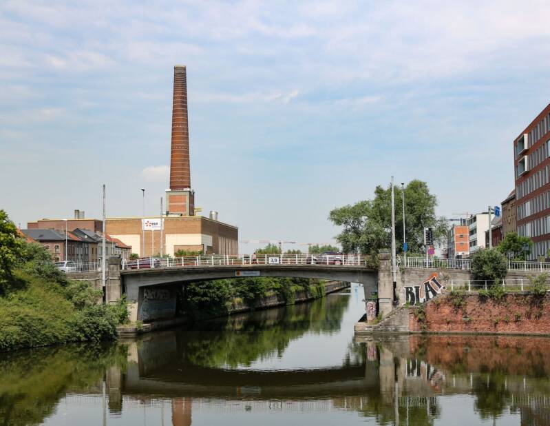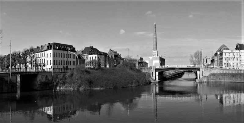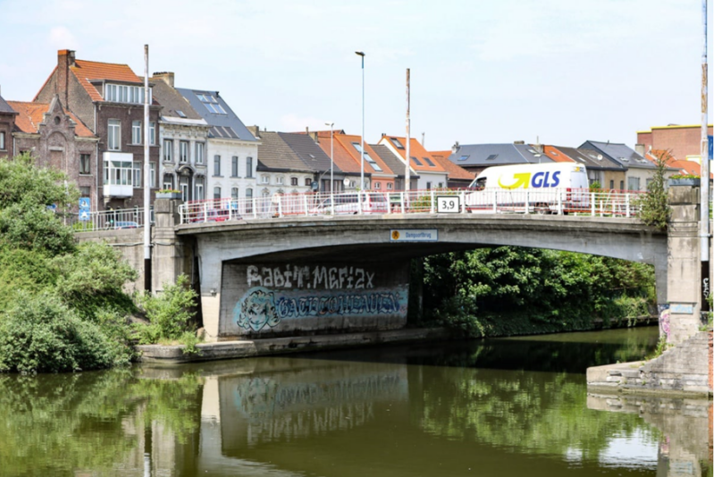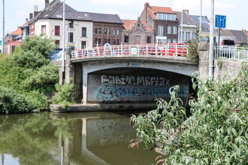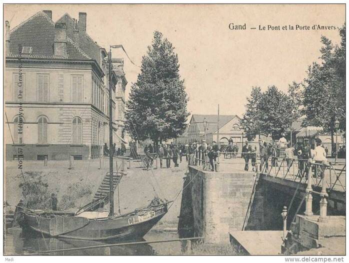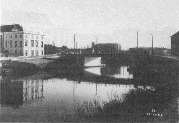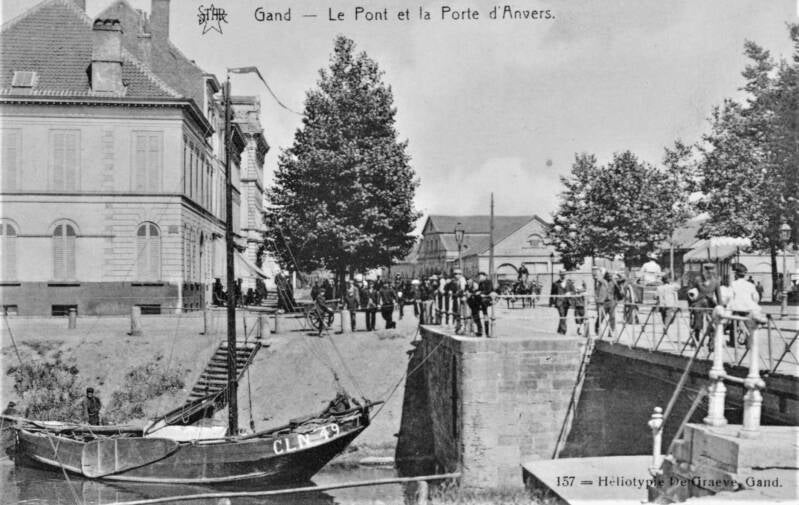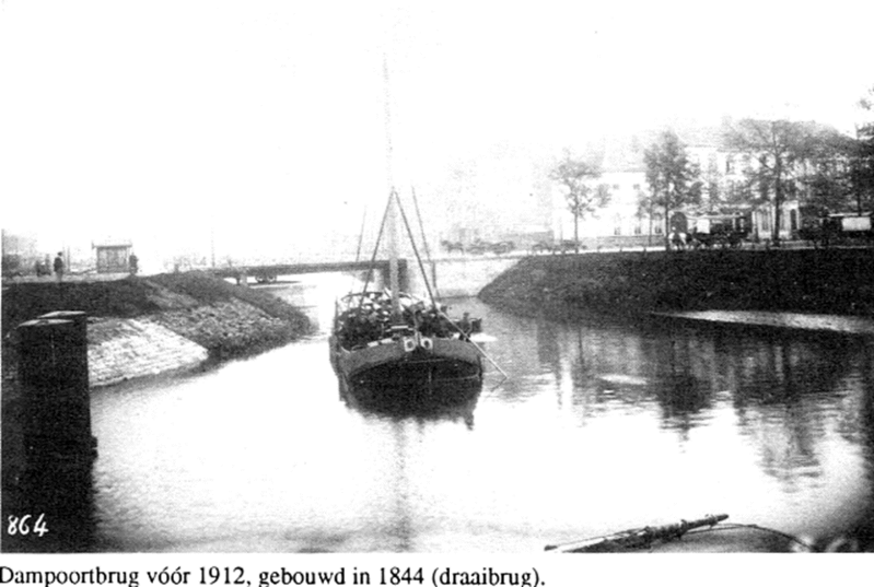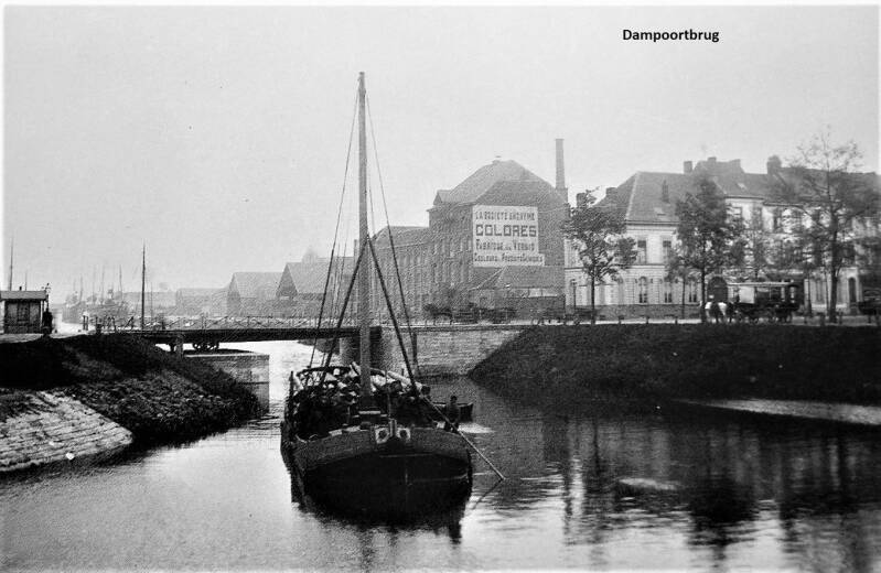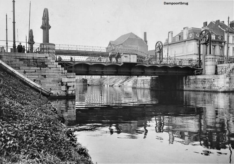 Volgens J.J. Steyaert : een stenen brugje over een klein kanaal (Sassevaart) alwaar tot in 1828 de Dampoort stond.