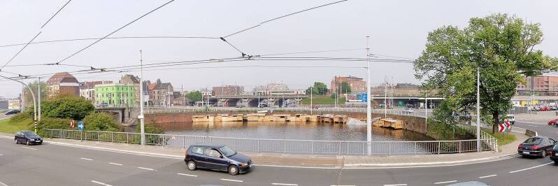 Voor die poort was een dubbele draaibrug in 1828.