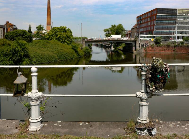 Voor de aansluiting met de nieuwe brug werden de omgevende straten opgehoogd.