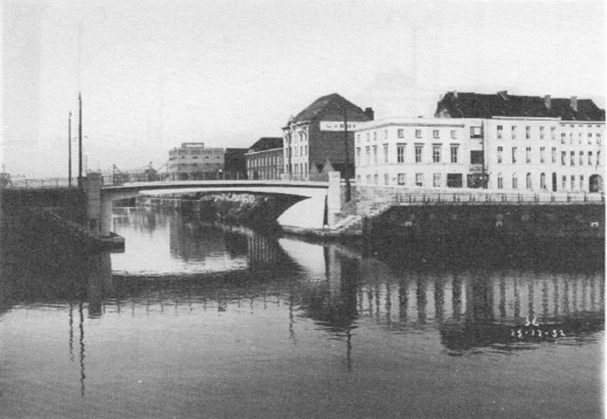De nieuwe brug (zie foto) werd officieel ingehuldigd op 9 mei 1938 door burgemeester Van der Stegen. Bij deze gelegenheid hielden de handelaars der Dampoortstraat gedurende drie dagen braderij en vierden feest. Het verkeer over de brug was immers zes maanden onderbroken geweest met al de nadelige gevolgen voor de bovenvermelde handelaars.