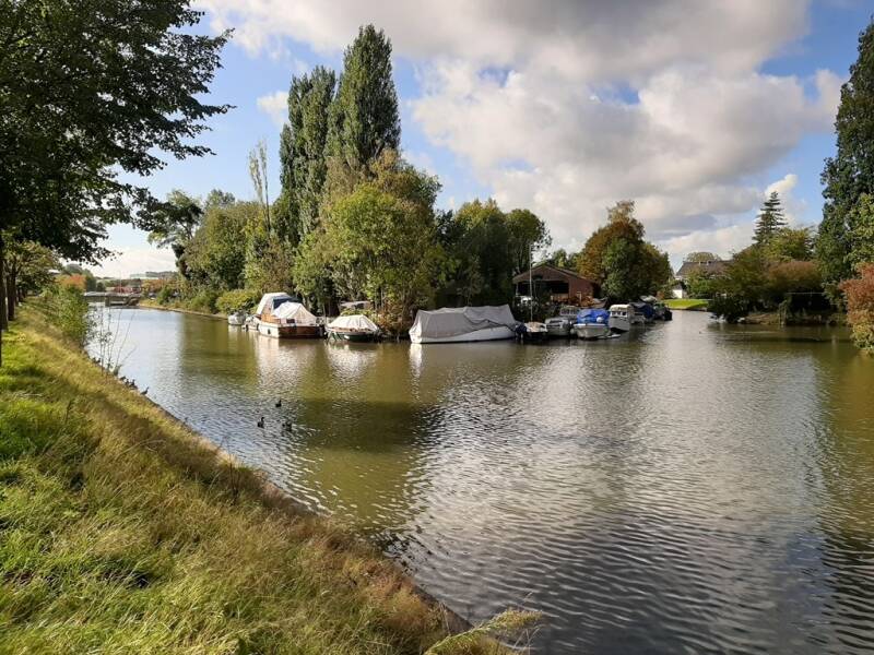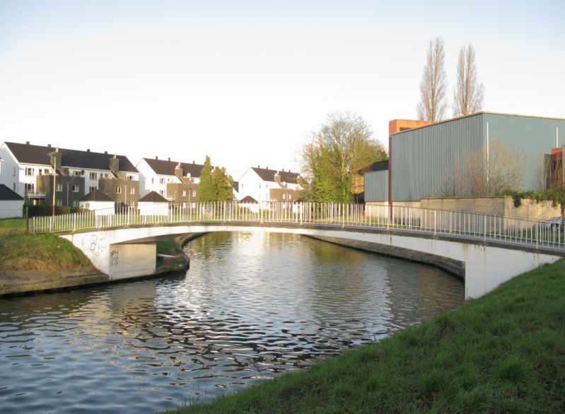 De nieuwe voetbrug, een constructie in gewapend beton, overspant 18,4 meter, heeft een vrije hoogte van 2, 76 men 6 m doorvaarbreedte.