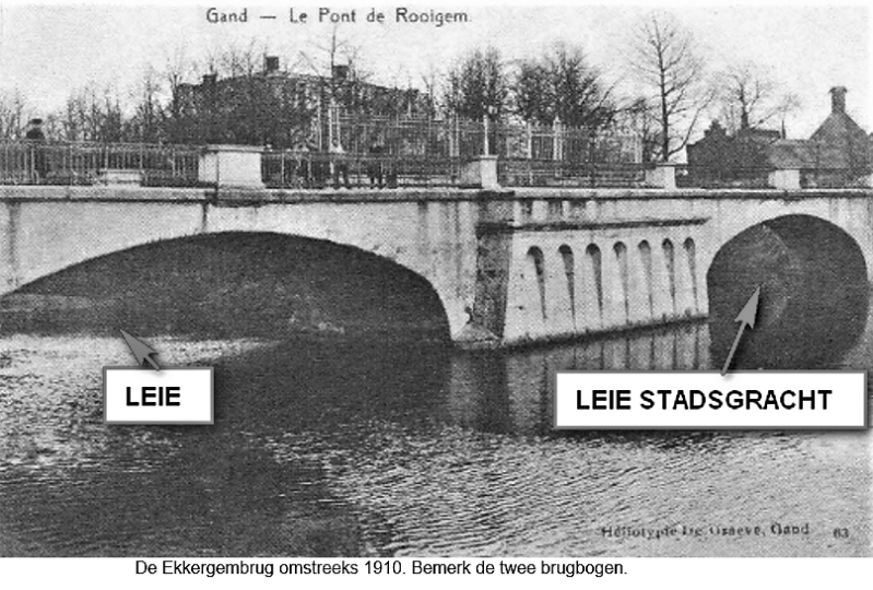 De brug bestond uit twee bogen welke over de twee Leiearmen lagen t.t.z. de oostelijke arm was eigenlijk een oude stadsgracht, overblijfsel van de stadsversterkingen.
