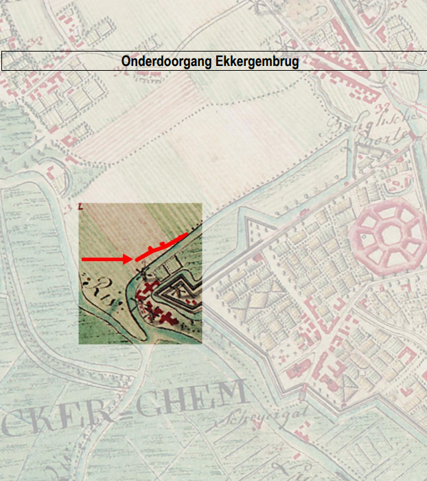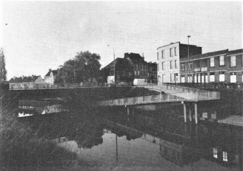 Het ontwerp werd goedgekeurd door de Gemeenteraad in zitting van 20 maart 1978 en voorziet in het heien van een fundering van lichte palen van gewapend beton in de waterweg en in de taluds, waarop geprefabriceerde elementen uit voorgespannen beton met een breedte van ca. 2,40 m worden geplaatst. De toegang naar het horizontaal gedeelte onder de Ekkergembrug zal aan weerszijden mogelijk zijn via enerzijds een toegangshelling en anderzijds een trap langsheen het landhoofd van de brug.