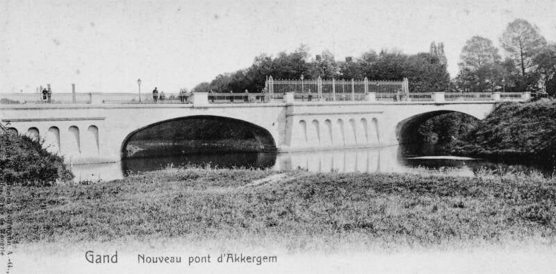 De eerste brug werd gebouwd naar aanleiding van de aanleg van de Rooigemlaan in de verlenging van de Akkergemlaan (heden Einde Were).