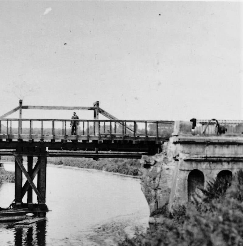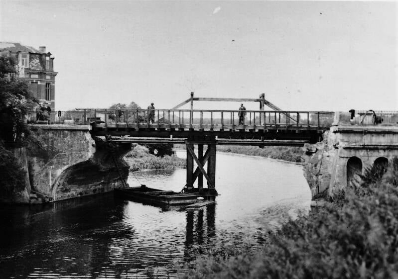 Van 7 april tot 26 mei 1941 werd er aan die noodbrug gewerkt om de rijweg van 4,5 m naar 6 m te brengen (aannemer R. De Taeye uit Gent, prijs 63.671,71 fr.).