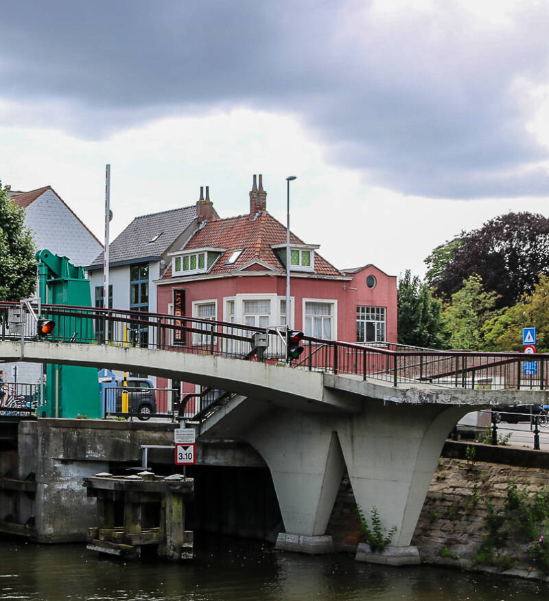 Het plan voorzag een hefbrug d.w.z. de brug heeft drie overspanningen en de middenste is