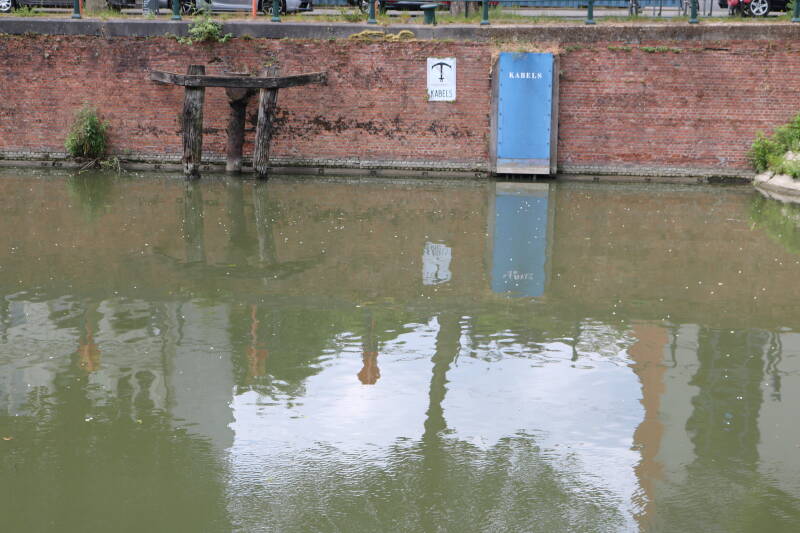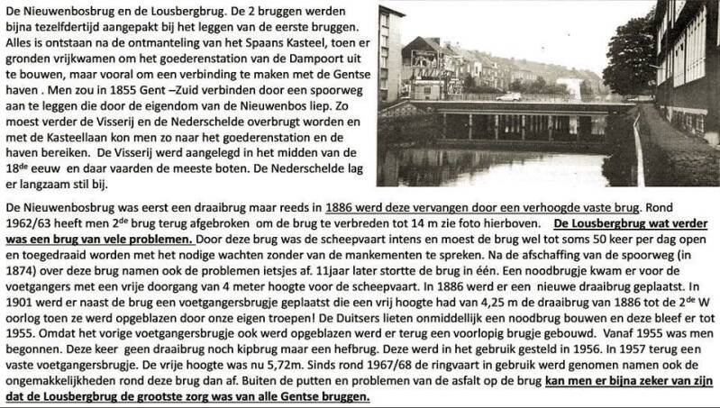 Regtover deze brug (De Nieuwebosbrug dus) ligt eene andere, ook draeiende ijzeren brug, welke van de Visscherij over de vaert van dezen naam geleidt naer den auden stadswal. Over dezelfde grondloopende ijzeren spooren voort door het voormalig Spanjaerdskasteel tot bij de Dampoort; hier ligt de Derde ijzeren brug van de verbindingsweg over de vaert en geleidt denzelven langs het Dok tot den Entrepot."