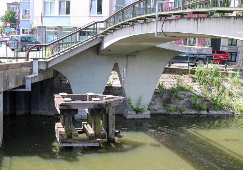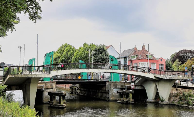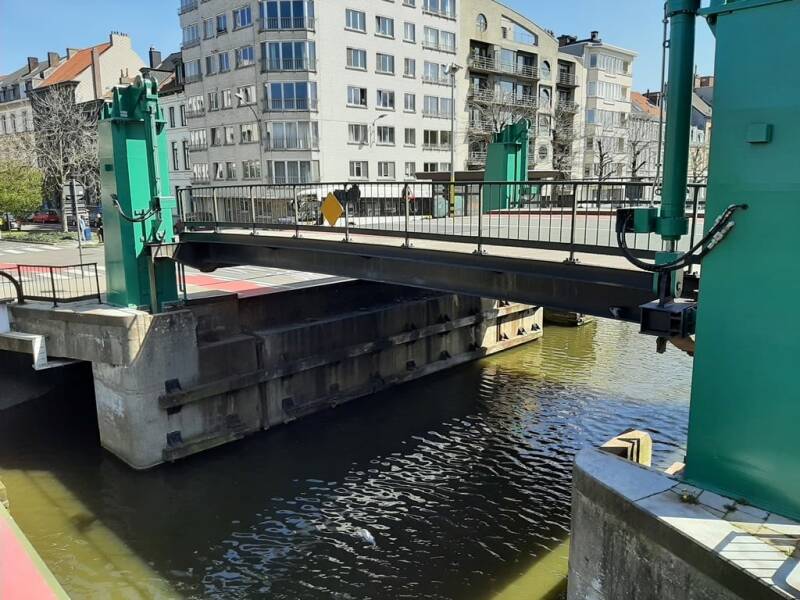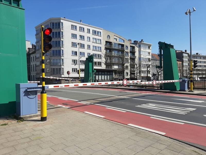 Intussen krijgen autobestuurders, motorijders en fietsers nog een kans naar de overzijde te geraken langs Visserij- of Slachthuis- en Van Eyckbrug. Maar tramreizigers en voetgangers verliezen er kostbare tijd. Nochtans ligt daar een practische betonnen voetgangersbrug.