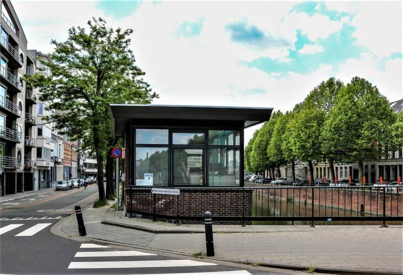 Het is oprecht een modem monumentje zoals het daar de witheid van zijn sierlijke architectonische bogen op de slanke pijlers te spiegelen hangt boven het drekkig-zwarte water van de bezoedelde Schelde.