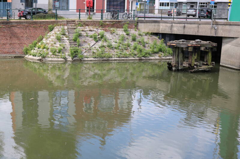 Langs beide oevers gebeurt de toegang en door een trap en door een hellend vlak, dit laatste voor fietsers (kruiwagens in de stad zijn nu wel verdwenen!).