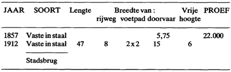 De, oorspronkelijk, stenen brug werd, in 1857, herbouwd als metalen vaste brug, gemaakt in de werkhuizen van de heer Van Acker, te Gent.