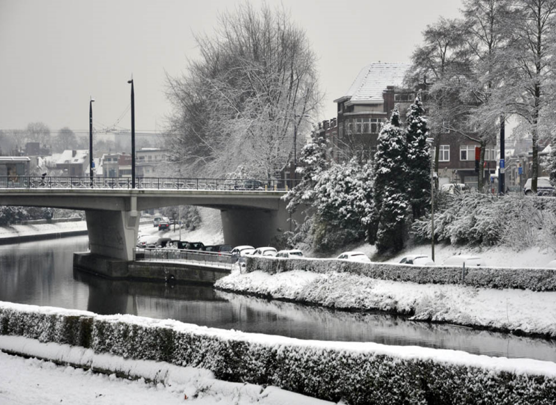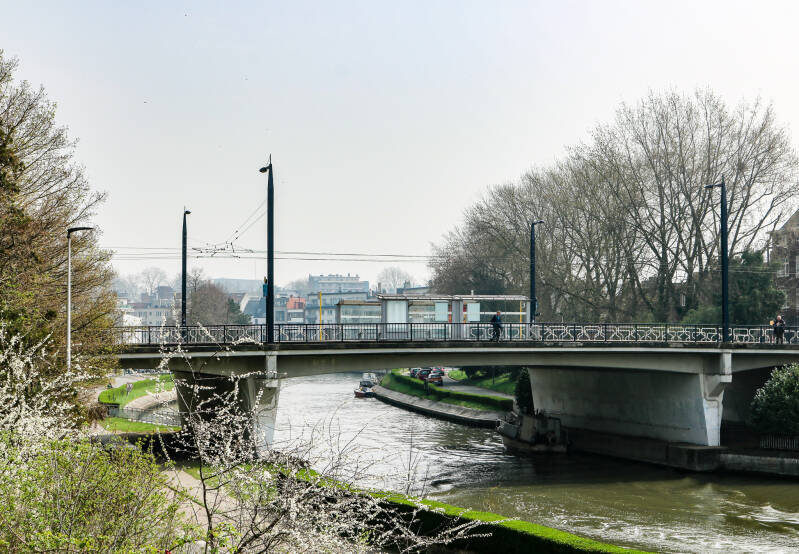 De brug, voorheen een stads brug, werd op staatskosten heropgebouwd omdat ze op de toekomstige ringlaan rond Gent lag.