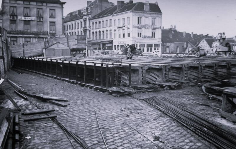 De plaatsing van de eerste balk in spanbeton, met een lengte van 20,5 men 20 ton wegende, gebeurde op 10 januari 1952.