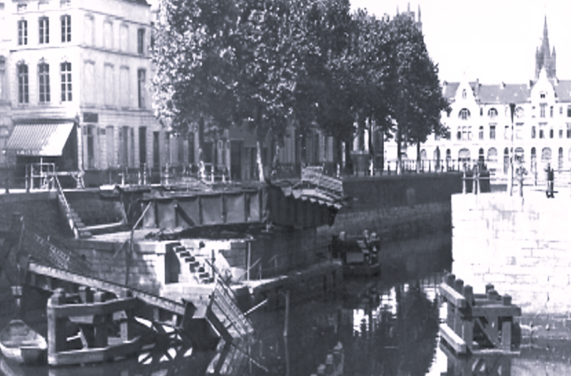 Dit is de brug gelegen tussen de Jan van Gentstraat en de St-Machariusstraat.