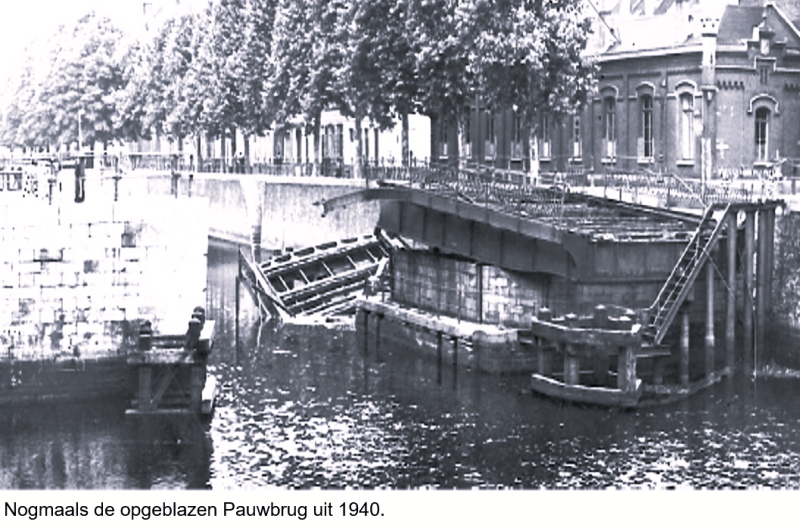 In mei 1940 werd de brug opgeblazen en "tijdelijk" vervangen door een houten, verhoogde, vaste, noodbrug. Deze laatste doet, anno 1983, nog steeds dienst, alleen in 1975 werd een kleine wijziging aan het middendeel aangebracht: het houten rijwegdek werd vervangen door een betonplaat rustend op metalen liggers.