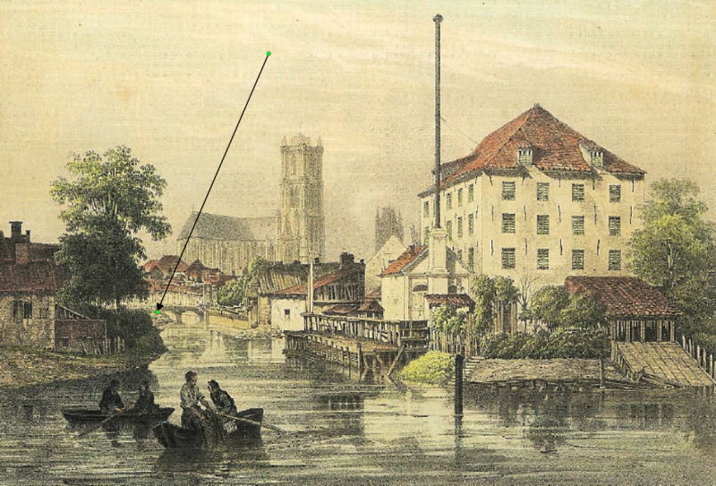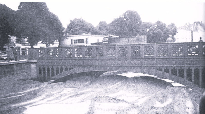 Toen men in 1855 op dezelfde plaats een nieuwe gietijzeren brug ging bouwen, ontdekte men bij het afbreken van de oude brug dat deze niet twee, maar drie wijde bogen had. De plannen van deze nieuwe brug waren van de stadsbouwmeester Jacob Van Hoecke (de specialist van architecturale gietijzeren constructies). Ze werd op 28 augustus 1855 ingehuldigd.