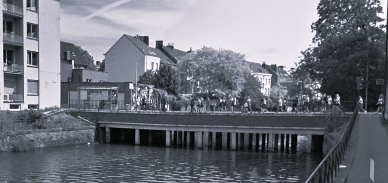 Terzelfdertijd werd de Twee Bruggenstraat verbreed naar 14 meter. Die verbreding ging gepaard met de verplaatsing van de as van de Lousbergbrug, die eveneens herbouwd werd.