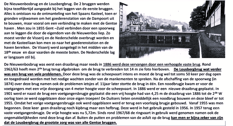 In opdracht van de N.M.B.S. werd, in 1855, een ijzeren draaibrug gebouwd over de Nederschelde, dit om de spoorlijn te kunnen aanleggen van Gent-Zuid naar Gent-Oost (Dampoort) zie verder onder "Lousbergbrug".